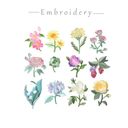 Fresh Small Size Plant Floral Embroidery Patch DIY Earring Decorative Sticker Sakura Rose Stitching Patch Computer Embroidery Line
